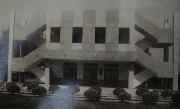 圖2:僅興建兩層樓的圖書館,上書校訓「勤儉合作」。