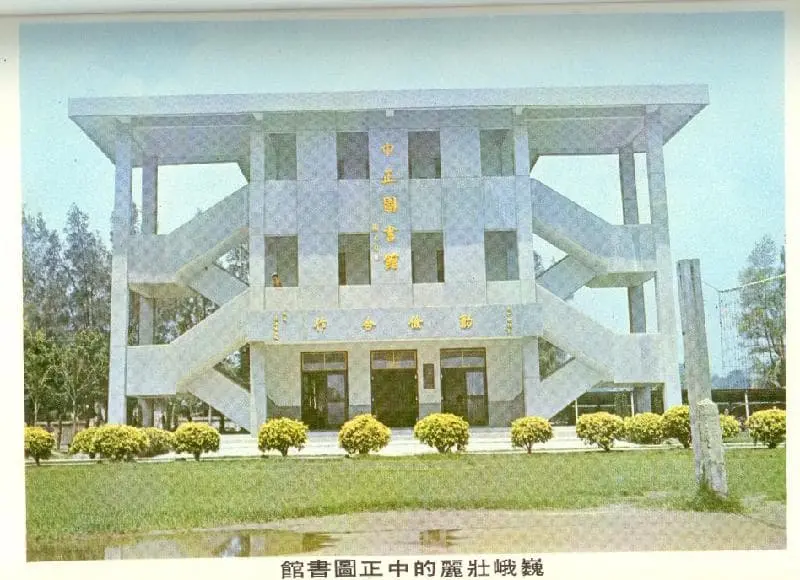 圖4:楊善淵校長任內初期圖書館。從此圖可以較明顯看出「中正圖書館」五字為前省主席謝東閔題字。