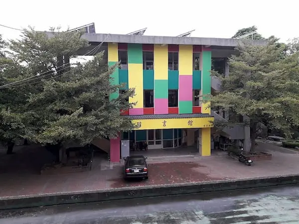 三層樓建築的外牆五彩繽紛,上書「圖書館」三個楷書大字,再加上「楊善淵題」的落款。活潑的配色,讓人感覺圖書館是校內「年輕」一輩的建築。但就讀土庫國中三年期間,圖書館二樓往三樓的樓梯,封了將近一年半,原因是天花板石磚剝落,怕砸到路過的師生。咦,難道「楊善淵題」,不該代表這棟建築是在楊校長任內(按:2012年8月~2018年5月)完工的嗎?怎麼還會掉石頭?